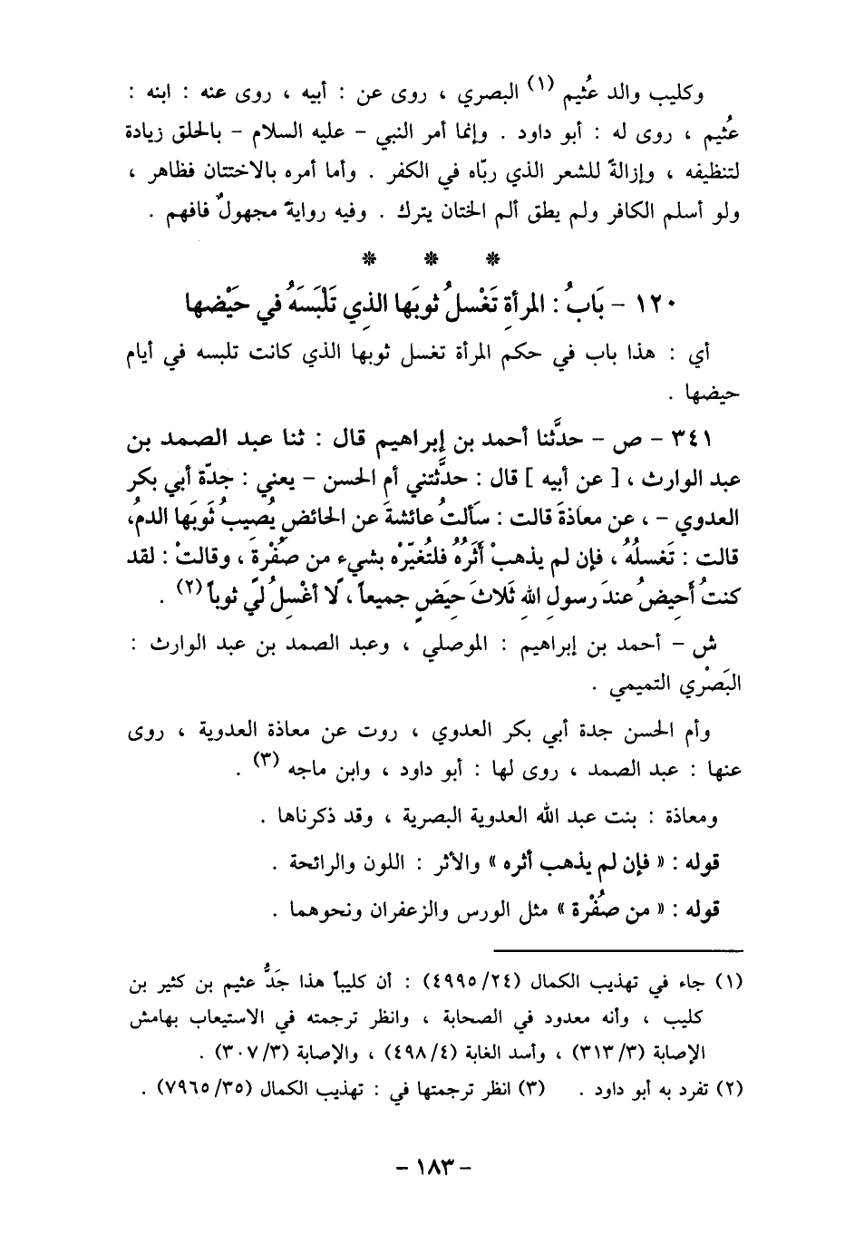 120- بَابُ: المرأةِ تَغسلُ ثوبَها الذِي تَلبَسَهُ في حَيضها