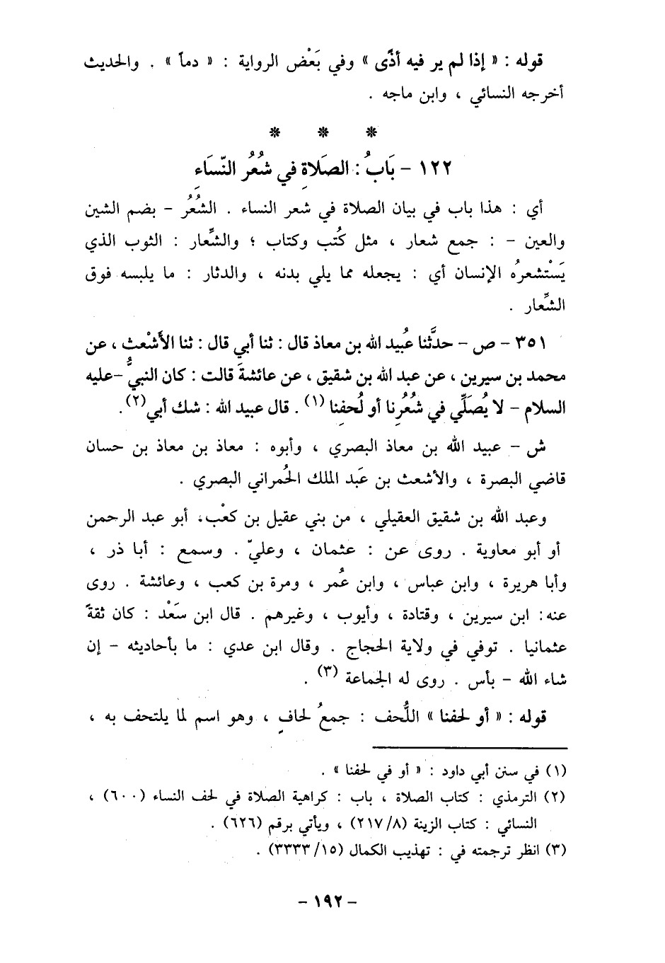 (2) الترمذي: كتاب الصلاة، باب: كراهية الصلاة في لحف النساء (600) ،