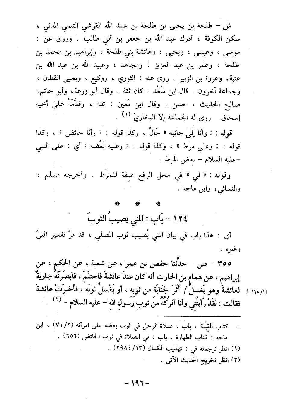 124- بَاب: المني يصيبُ الثوبَ