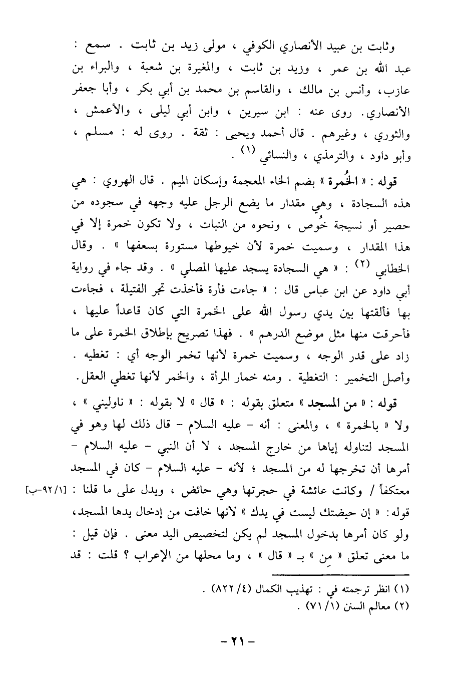 الخطابي (2) : " هي السجادة يسجد عليها المصلي ". وقد جاء في رواية