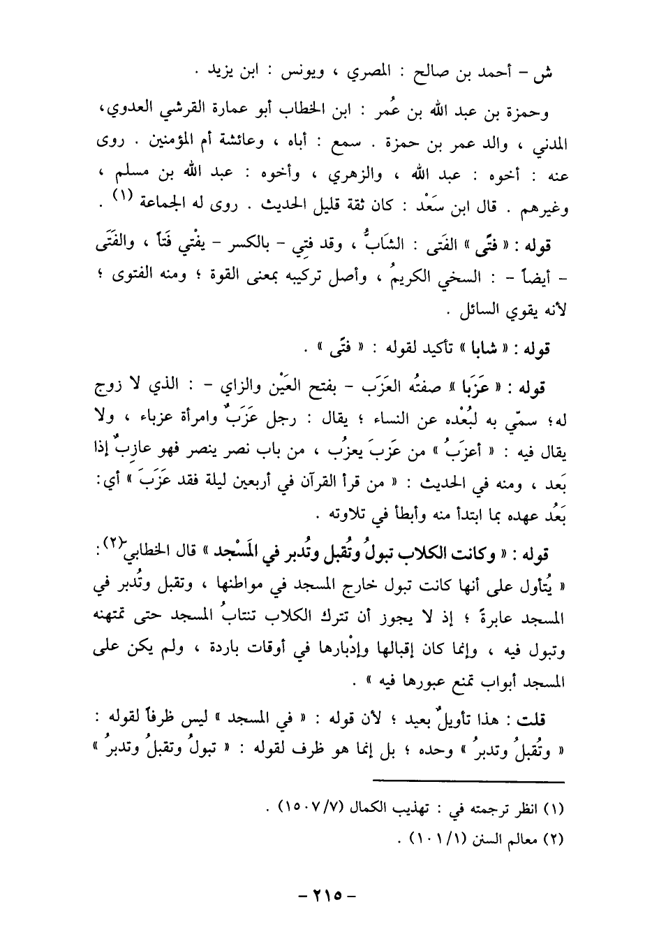 ش- أحمد بن صالح: المصري، ويونس: ابن يزيد.