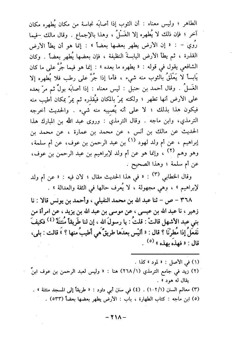(5) ابن ماجه: كتاب الطهارة، باب: الأرض يطهر بعضها بعضا (533) .