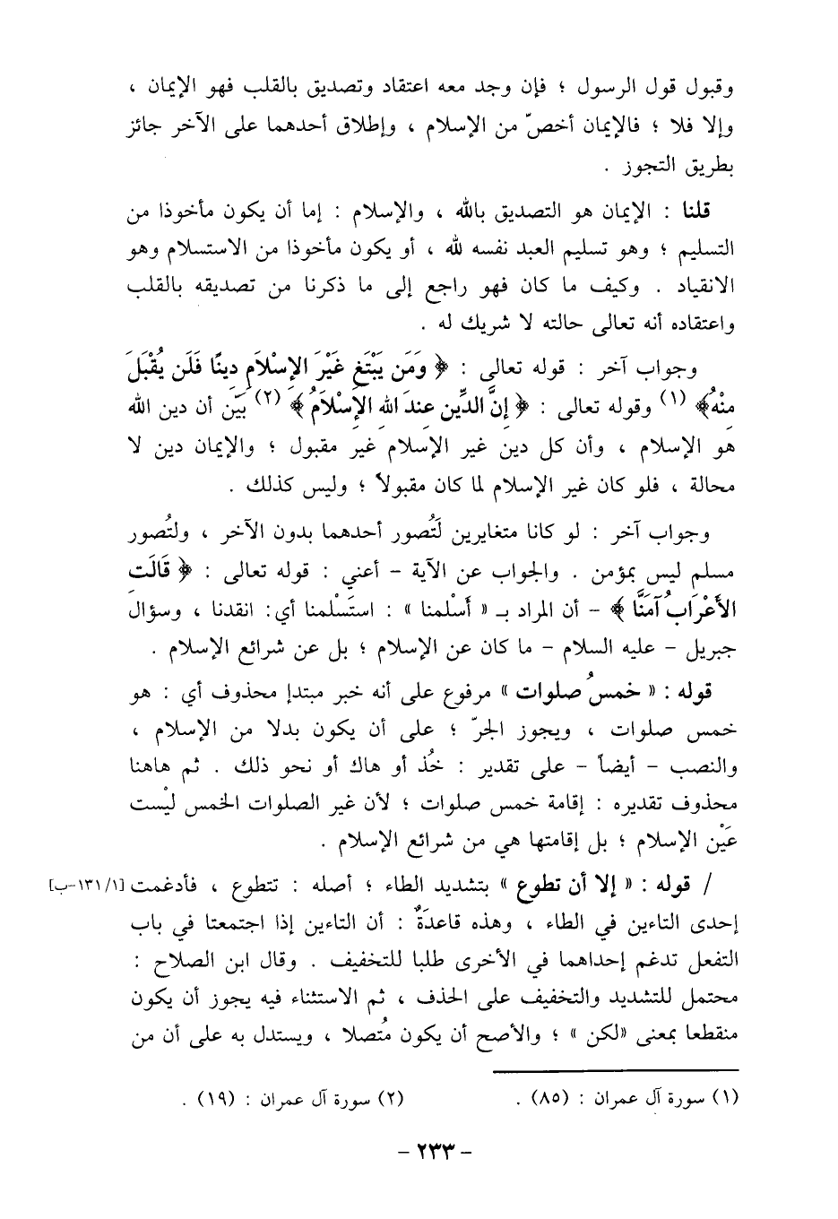 (1) سورة اَل عمران: (85) .
