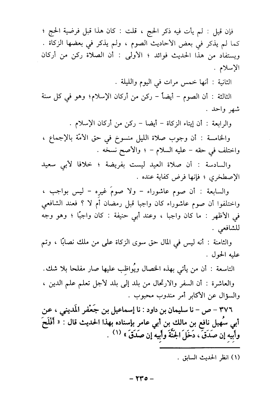 أبي سُهيل نافع بن مالك بن أبي عامر بإسناده بهذا الحديث قال: " أفلَحَ