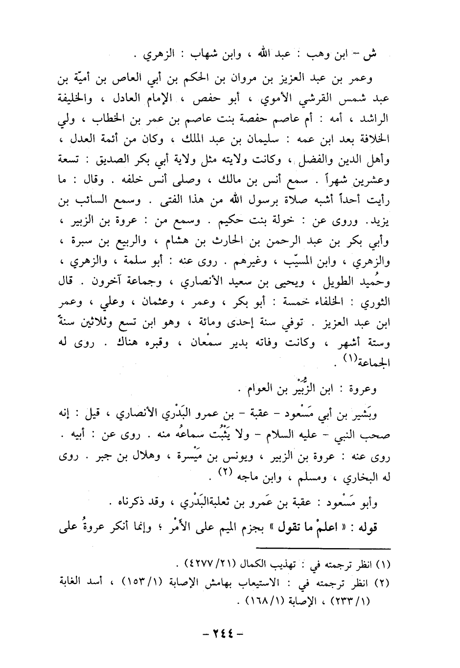 وعروة: ابن الزبير بن العوام.