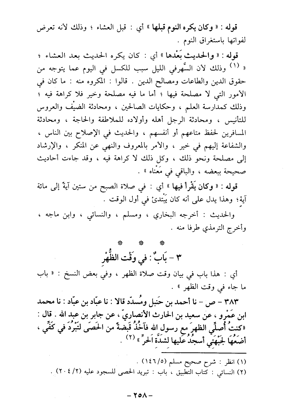 (2) النسائي: كتاب التطبيق، باب: تبريد الحصى للسجود عليه (2/204) .