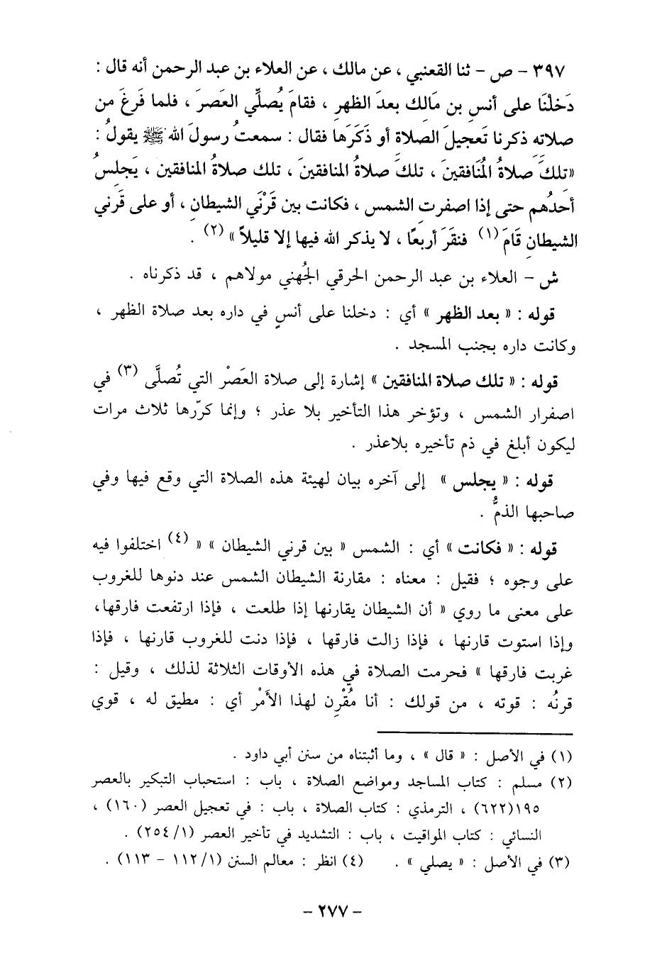 397- ص- ثنا القعنبي، عن مالك، عن العلاء بن عبد الرحمن أنه قال: