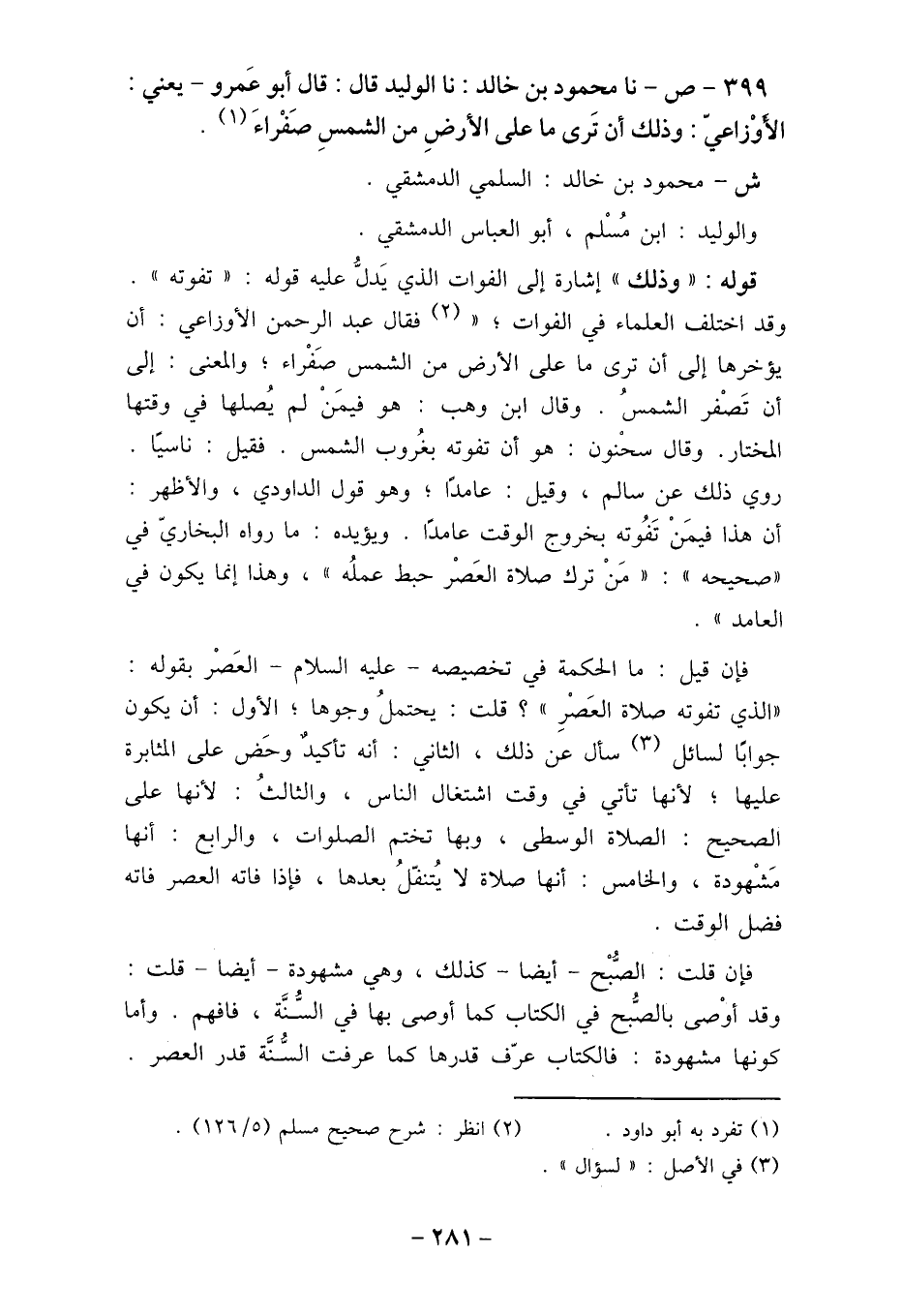 399- ص- نا محمود بن خالد: نا الوليد قال: قال أبو عَمرو- يعني: