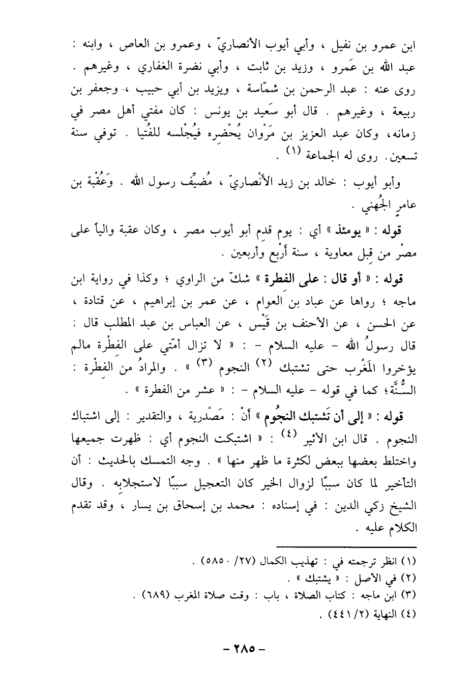 يؤخروا المَغرب حتى تشتبك (2) النجوم (3) ". والمرادُ من الفطرة: