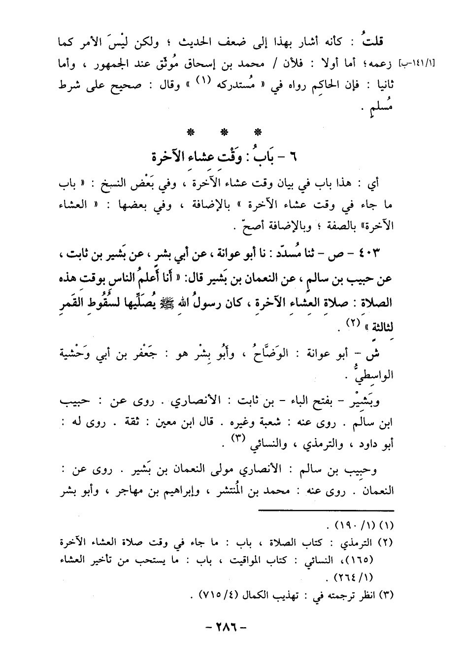 (2) الترمذي: كتاب الصلاة، باب: ما جاء في وقت صلاة العشاء الآخرة