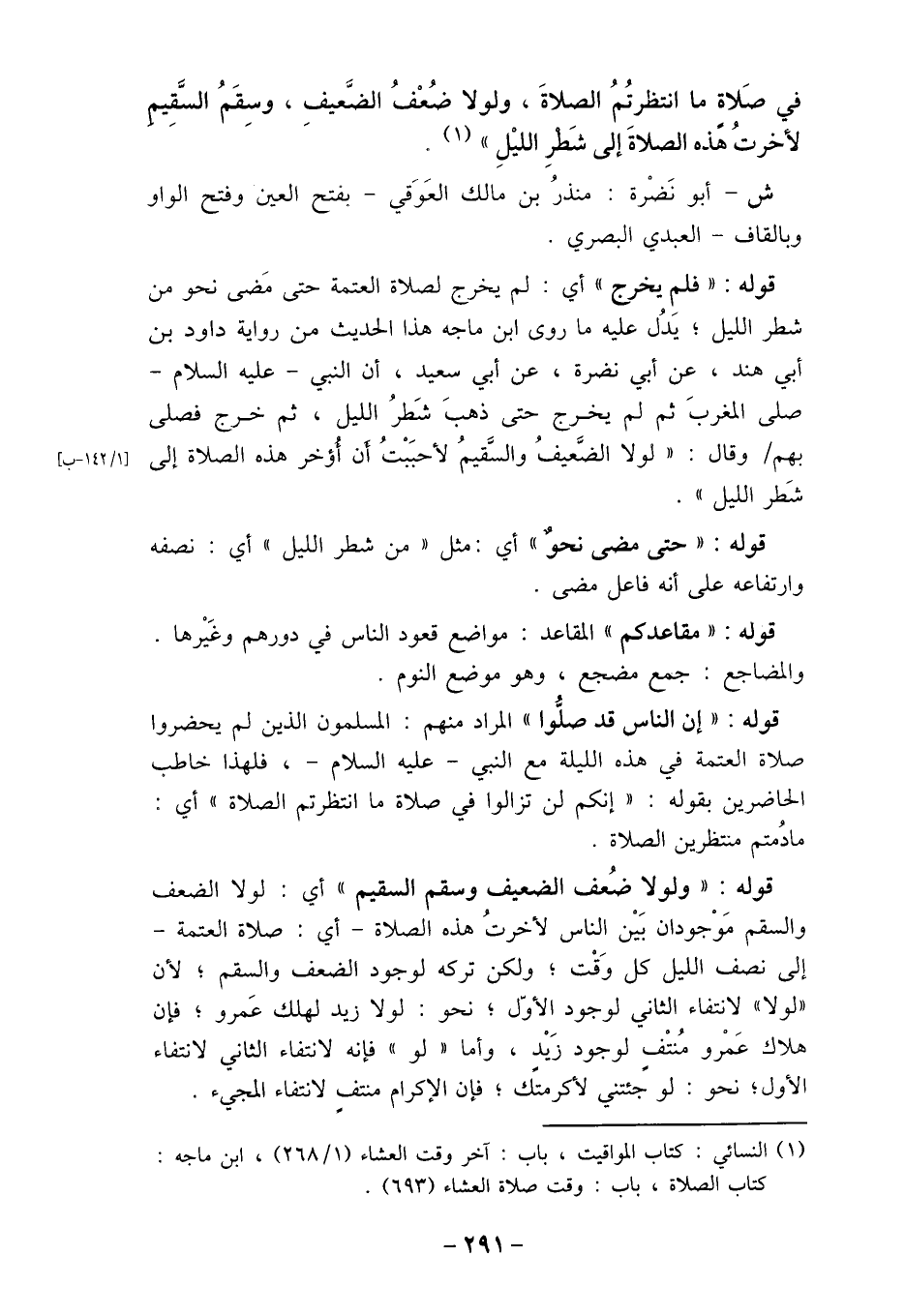 في صَلاة ما انتظرتُمُ الصلاةَ، ولولا ضُعفُ الضَّعيفِ، وسِقَمُ السَّقِيم