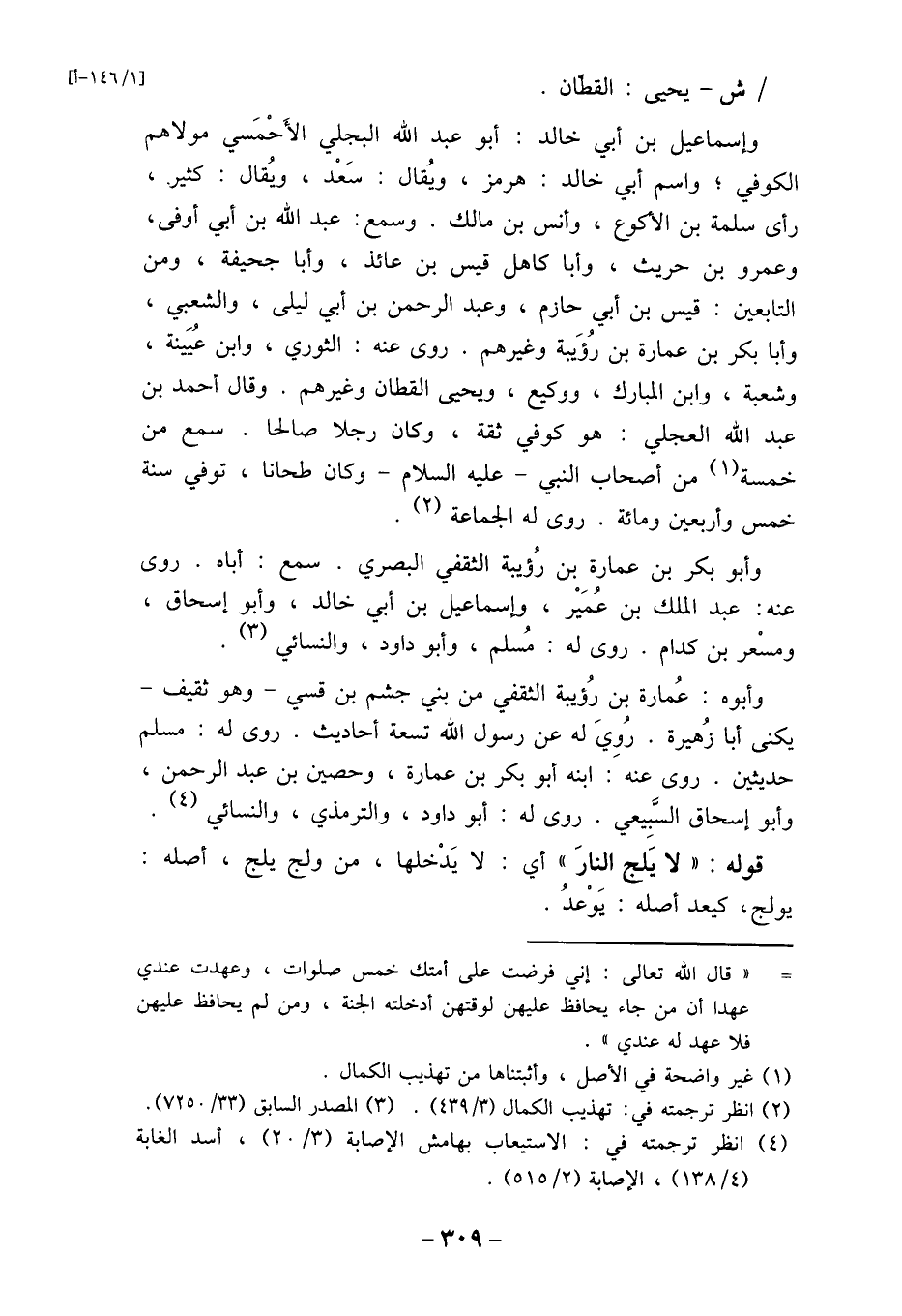 التابعين: قيس بن أبي حازم، وعبد الرحمن بن أبي ليلى، والشعبي،