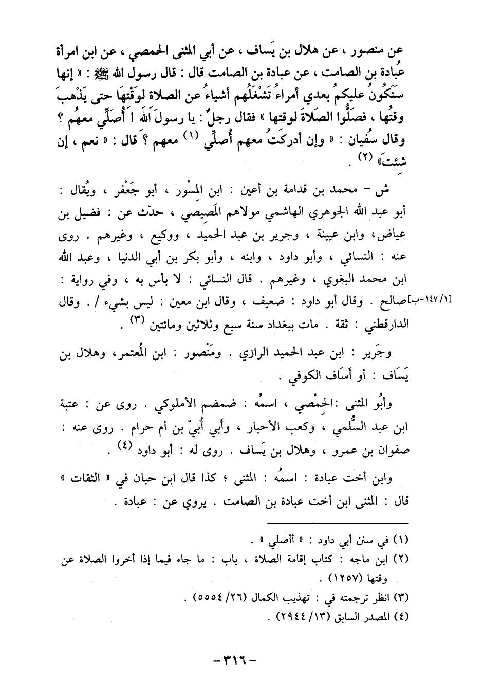وابن أخت عبادة: اسمُه: المثنى؛ كذا قال ابن حبان في " الثقات "
