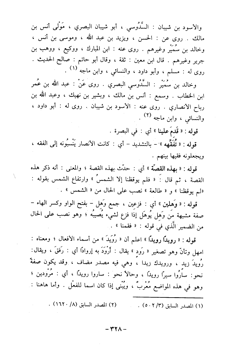 توله: " رويدًا رويدًا " اعلم أن " رُوَيدَ " من أسماء الأفعال؛ ومعناه: