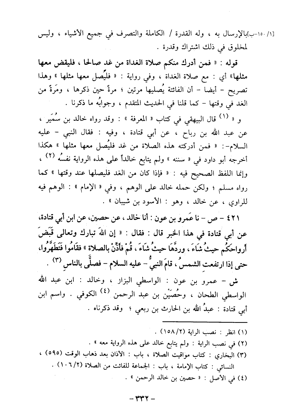 421- ص- نا عَمرو بن عون: أنا خالد، عن حصين، عن ابن أبي قتادة