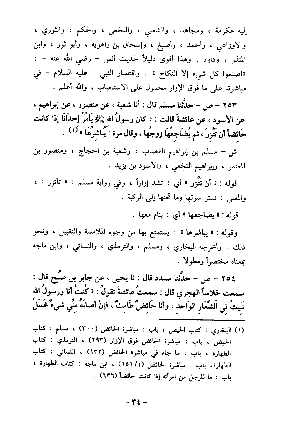 (1) البخاري: كتاب الحيض، باب: مباشرة الحائض (300) ، مسلم: كتاب
