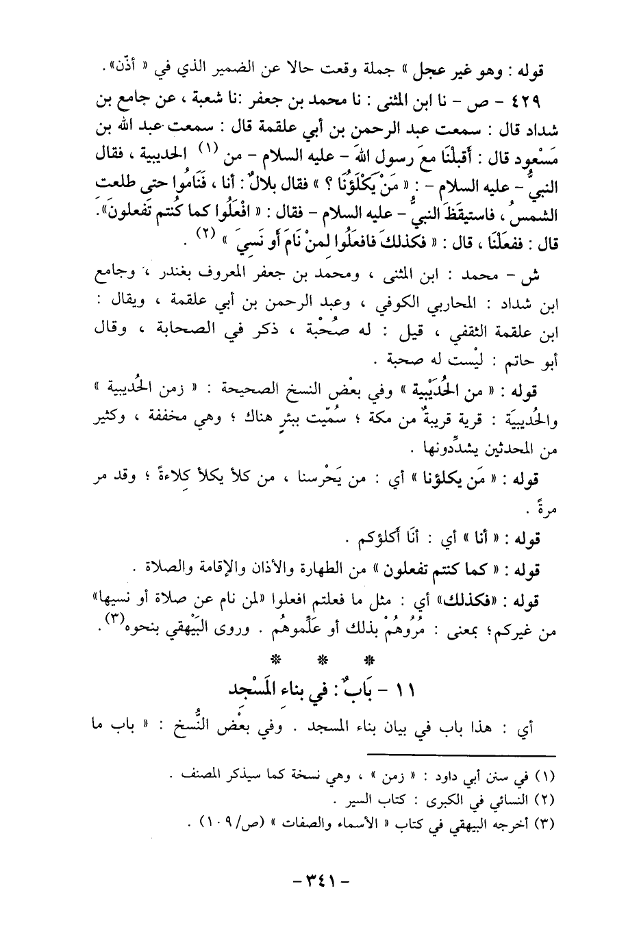 429- ص- نا ابن المثنى: نا محمد بن جعفر: نا شعبة، عن جامع بن