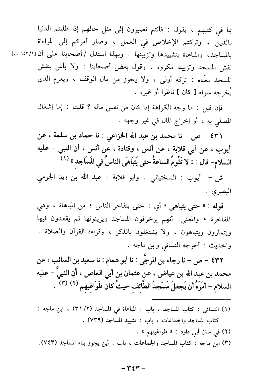 (1) النسائي: كتاب المساجد، باب: المباهاة في المساجد (2/31) ، ابن ماجه: