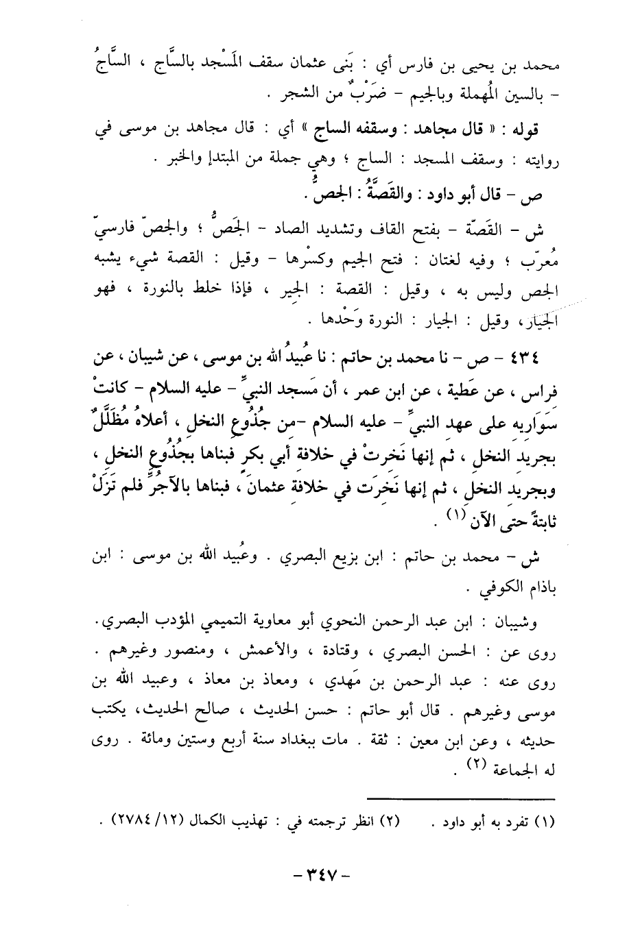 محمد بن يحيى بن فارس أي: بَنى عثمان سقف المَسجد بالسَّاج، السَاجُ