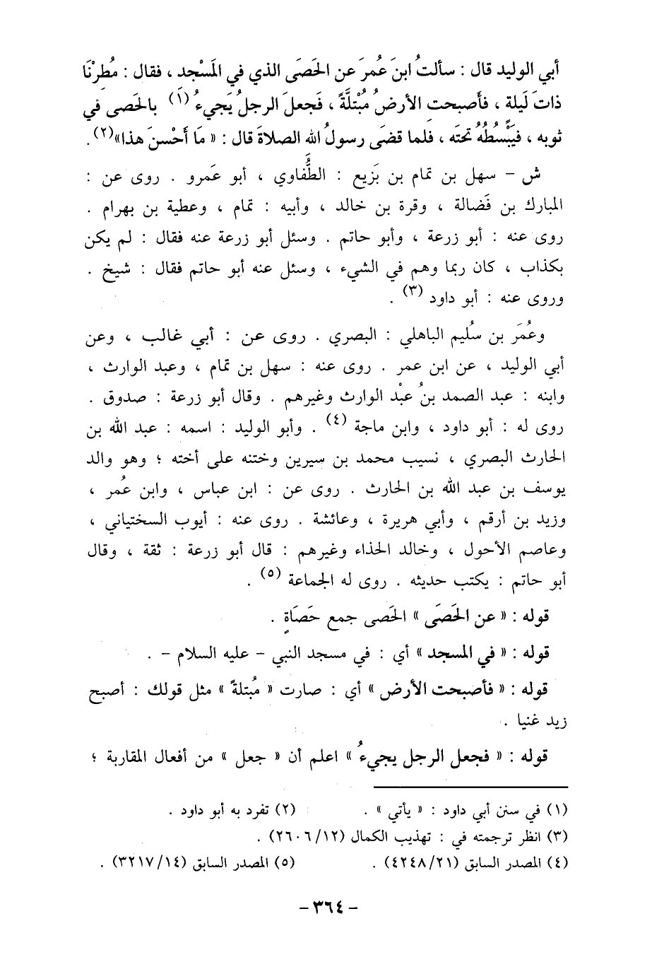 أبي الوليد قال: سألتُ ابنَ عُمرَ عن الحَصَى الذي في المَسجد، فقال: مُطِرنَا