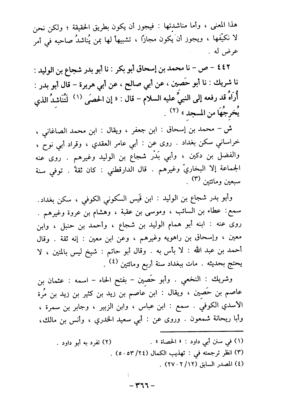 442- ص- نا محمد بن إسحاق أبو بكر: نا أبو بدر شجاع بن الوليد: