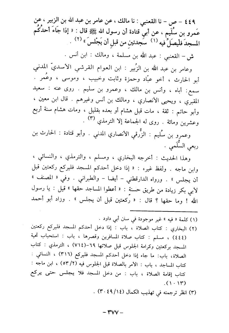 449- ص- نا القعنبي: نا مالك، عن عامر بن عبد الله بن الزبير، عن