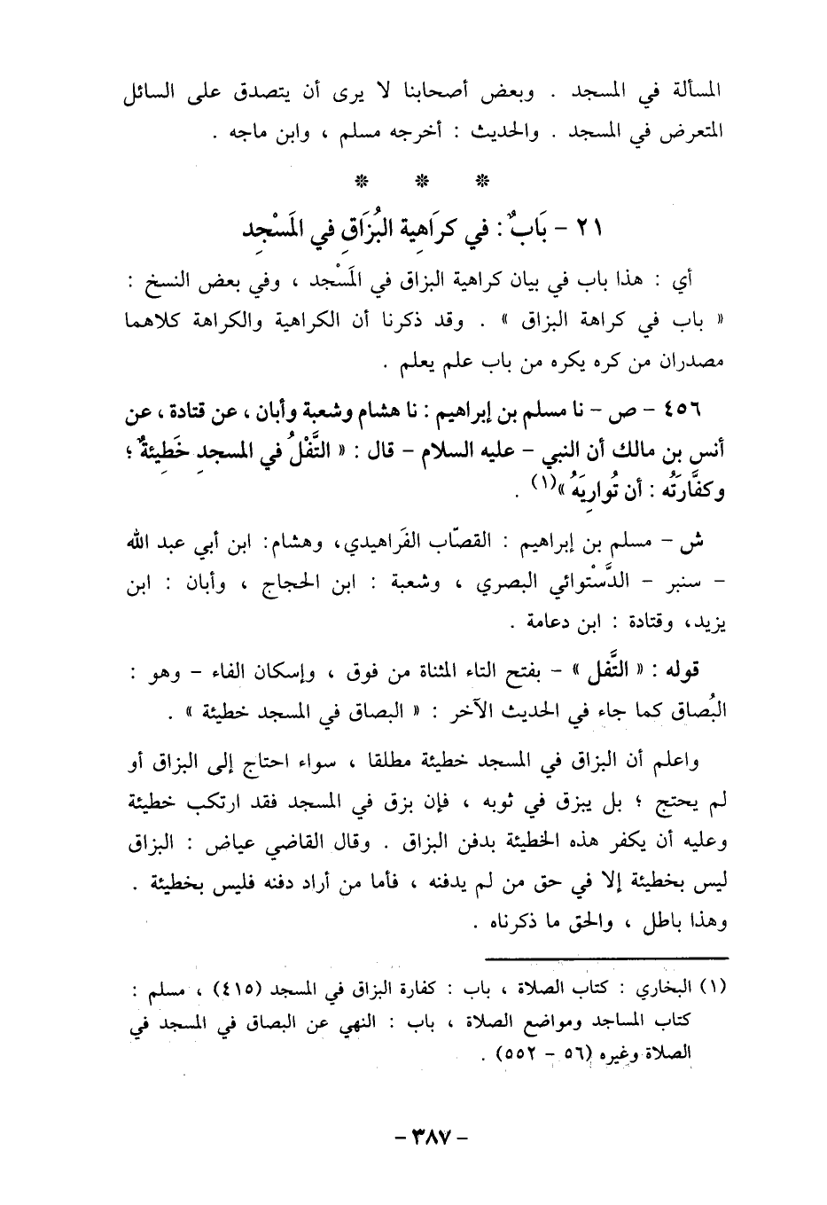 21- بَاب: في كرَاهِية البُزَاقِ في المَسجِد