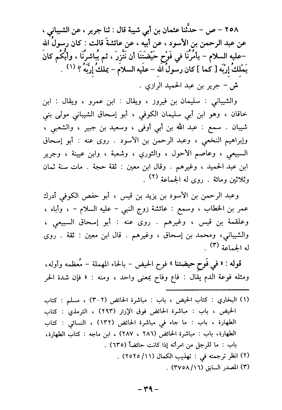 258- ص- حدثنا عثمان بن أبي شيبة قال: ثنا جرير، عن الشيباني،