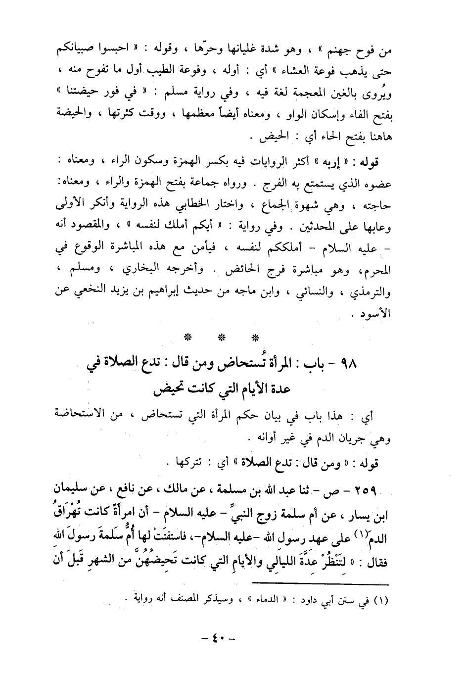 98- باب: المرأة تُستحاض ومن قال: تدع الصلاة في