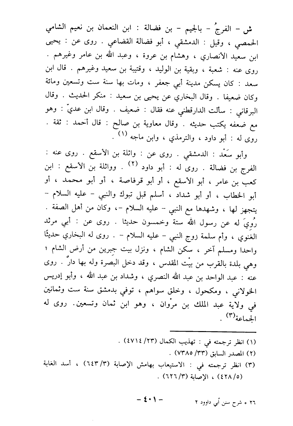 الفرج بن فضالة. روى له: أبو داود (2) . وواثلة بن الأسقع: ابن