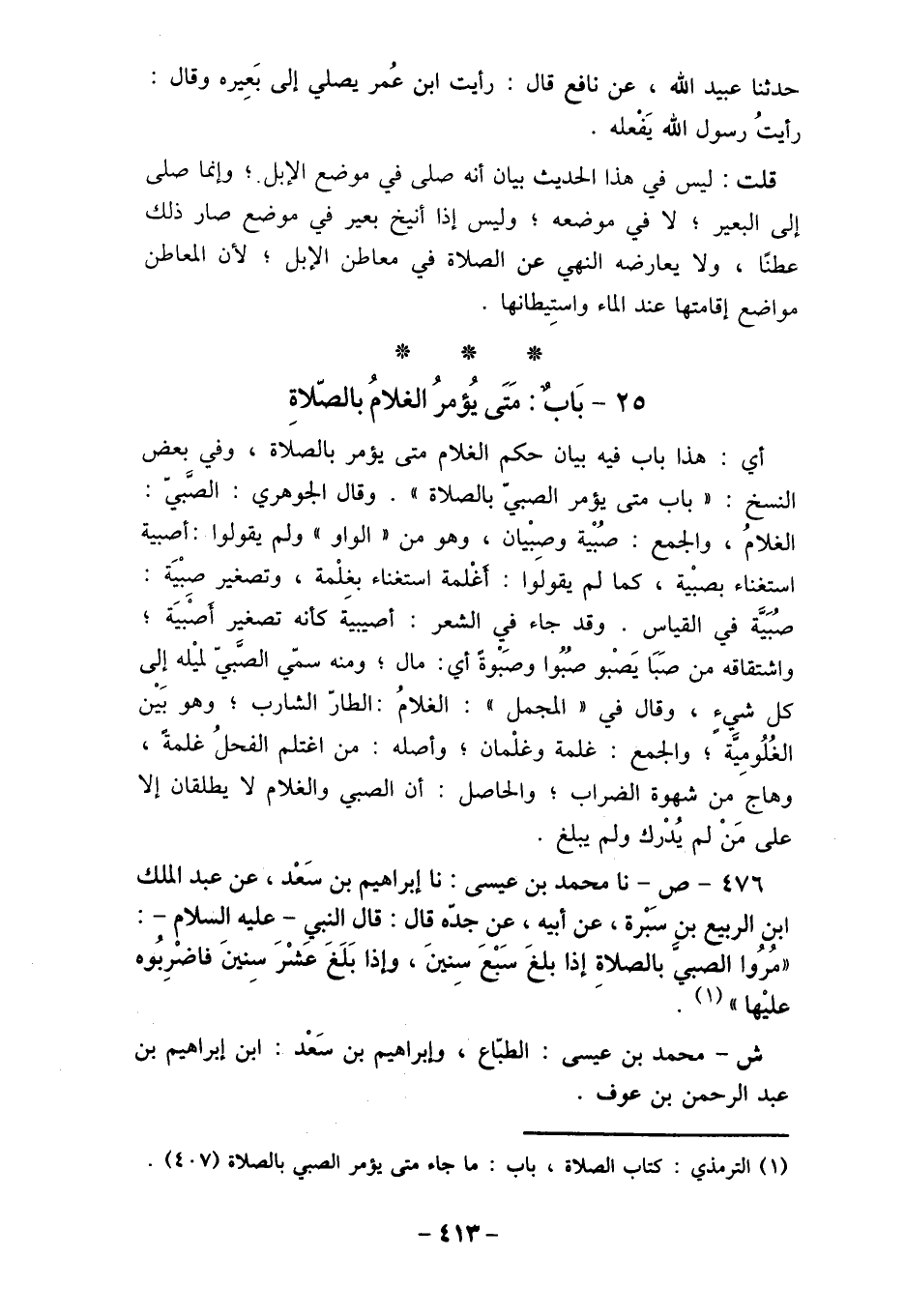 25- باب: مَتَى يُؤمرُ الغلامُ بالصلاةِ
