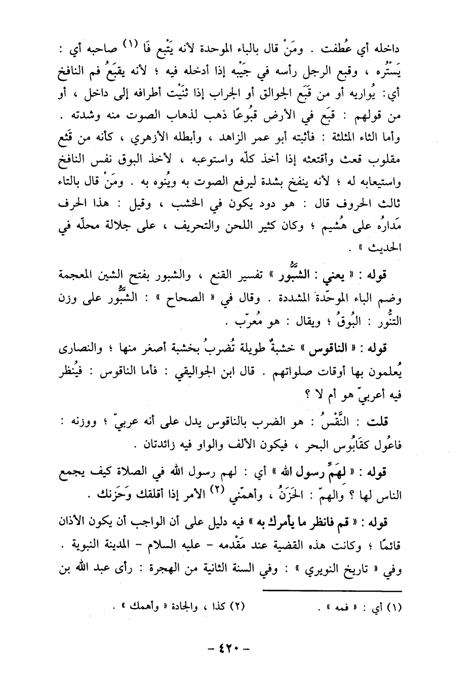 يُعلمون بها أوقات صلواتهم. قال ابن الجواليقي: فأما الناقوس: فيُنظر