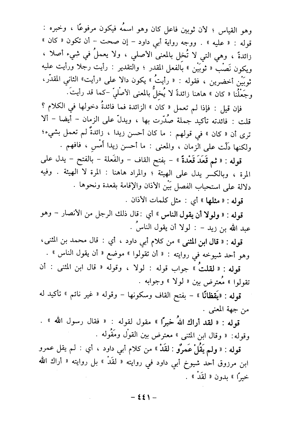 قوله: " عليه ". ووجه رواية أبي داود- إن صحت- أن تكون " كان "