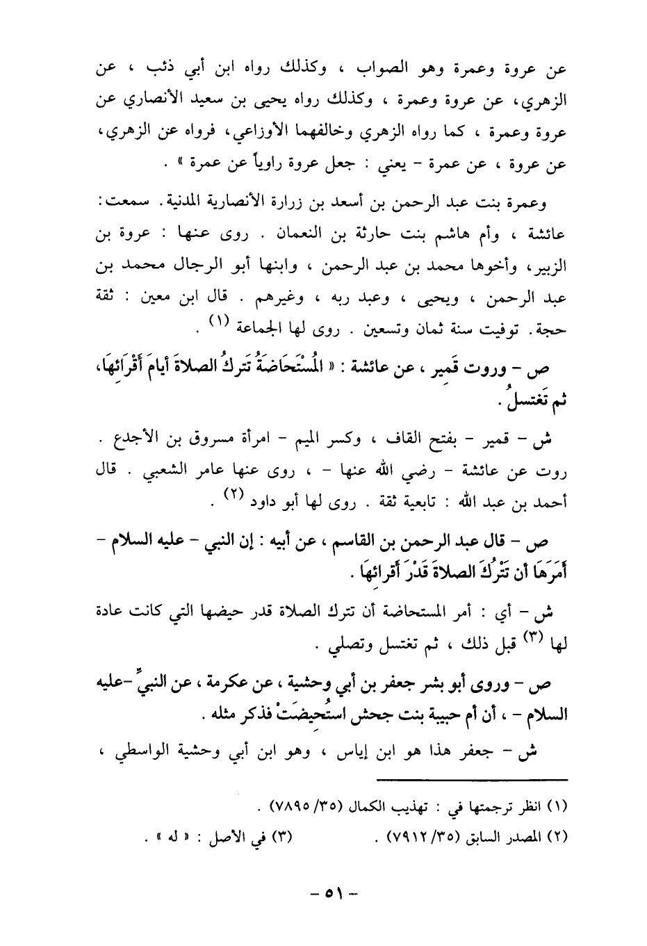 ص- وروت قَمير، عن عائشة: " المُستَحَاضَةُ تَتركُ الصلاةَ أيامَ أقرَائِهَا،