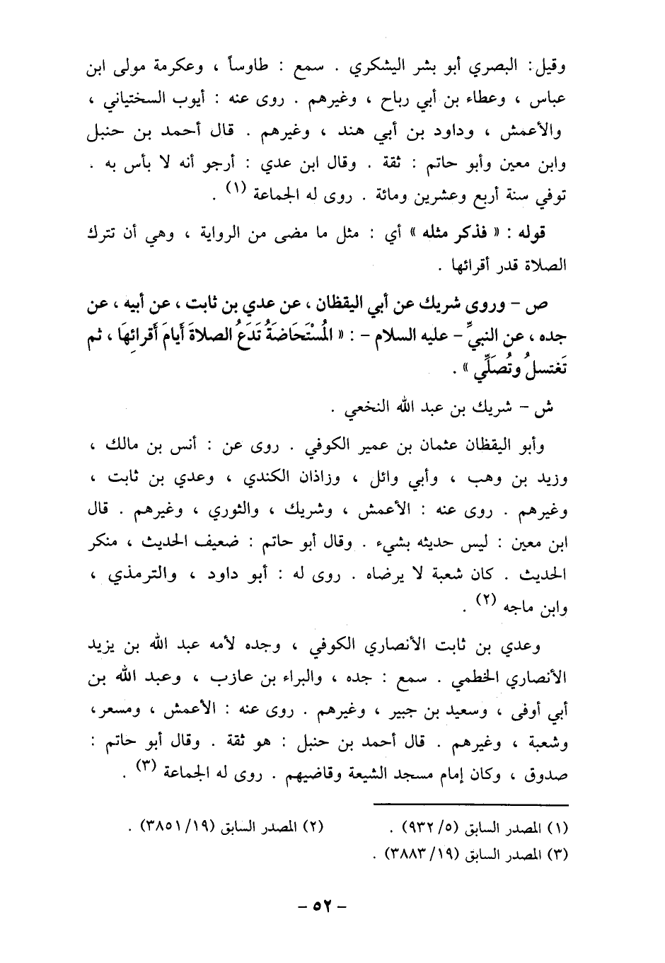 ص- وروى شريك عن أبي اليقظان، عن عدي بن ثابت، عن أبيه، عن
