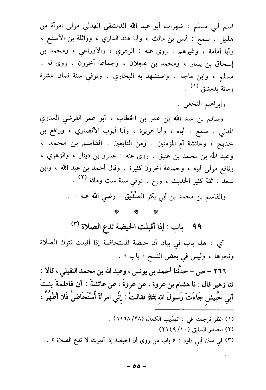 (3) في سنن أبي داود: " باب من روى أن الحيضة إذا أدبرت لا تدع الصلاة ".