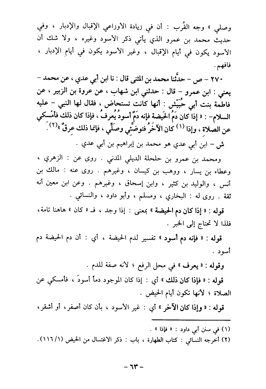 (2) أخرجه النسائي: كتاب الطهارة، باب: ذكر الاغتسال من الحيض (1/116) .