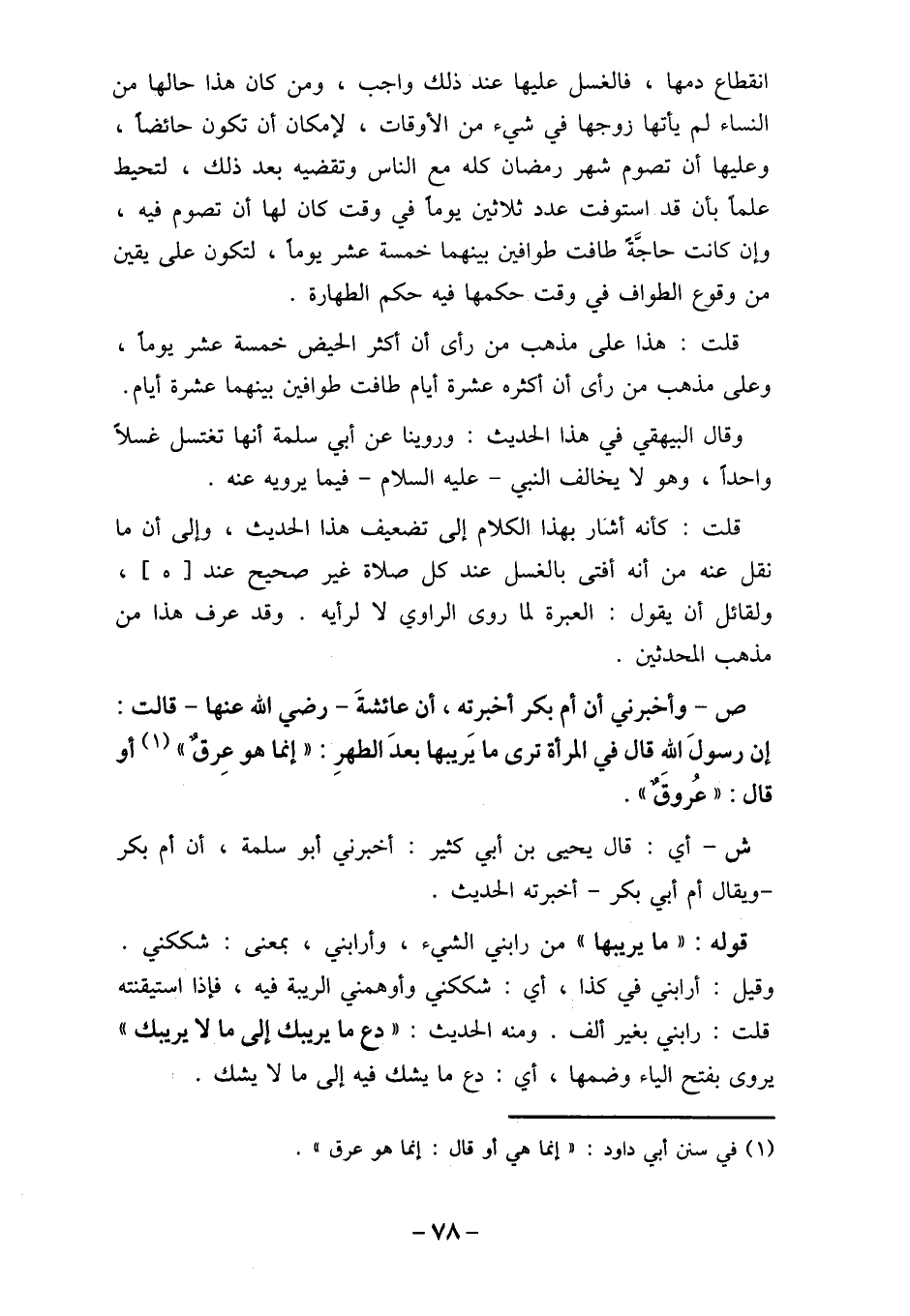 (1) في سنن أبي داود: " إنما هي أو قال: إنما هو عرق ".