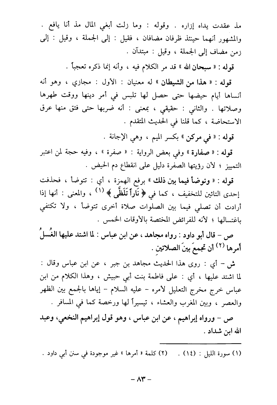 ص- قال أبو داود: رواه مجاهد، عن ابن عباس: لما اشتد عليها الغُسلُ