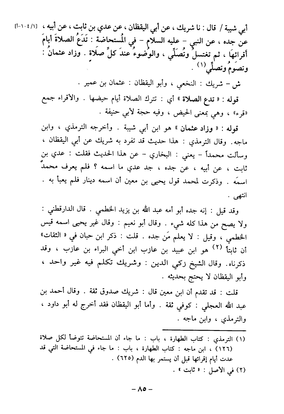 (1) الترمذي: كتاب الطهارة، باب: ما جاء أن المستحاضة تتوضأ لكل صلاة