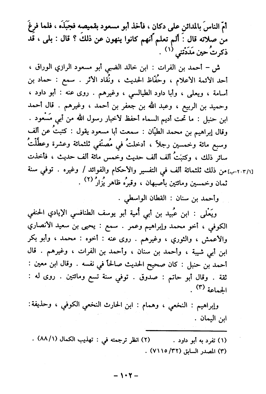 (1) تفرد به أبو داود. (2) انظر ترجمته في: تهذيب الكمال (1 / 88) (3) المصدر السابق (32 / 7115) .