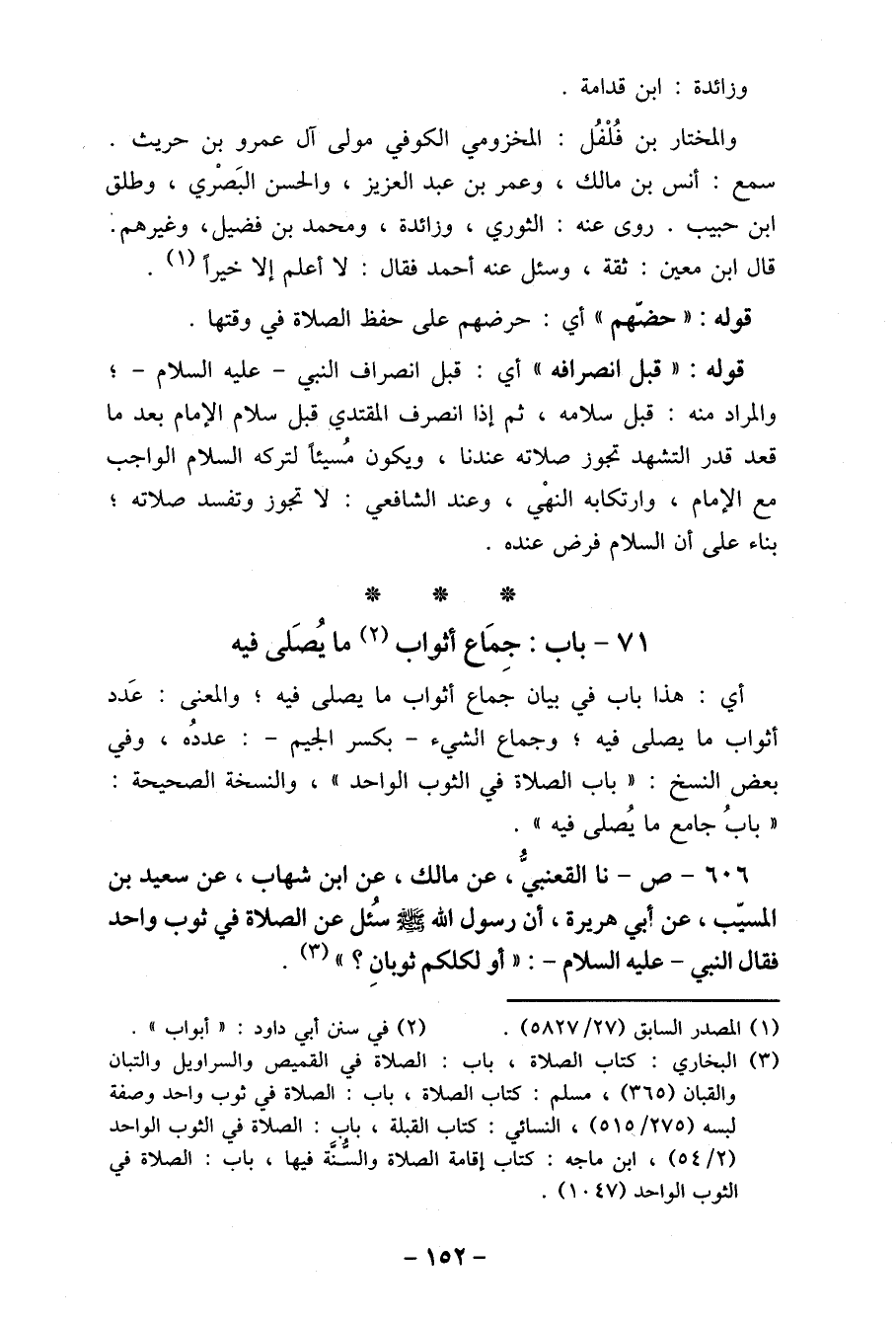 (3) البخاري: كتاب الصلاة، باب: الصلاة في القميص والسراويل والشبان والقبان (365) ، مسلم: كتاب الصلاة، باب: الصلاة في ثوب واحد وصفة لبسه (275 / 515) ، النسائي: كتاب القبلة، باب: الصلاة في الثوب الواحد