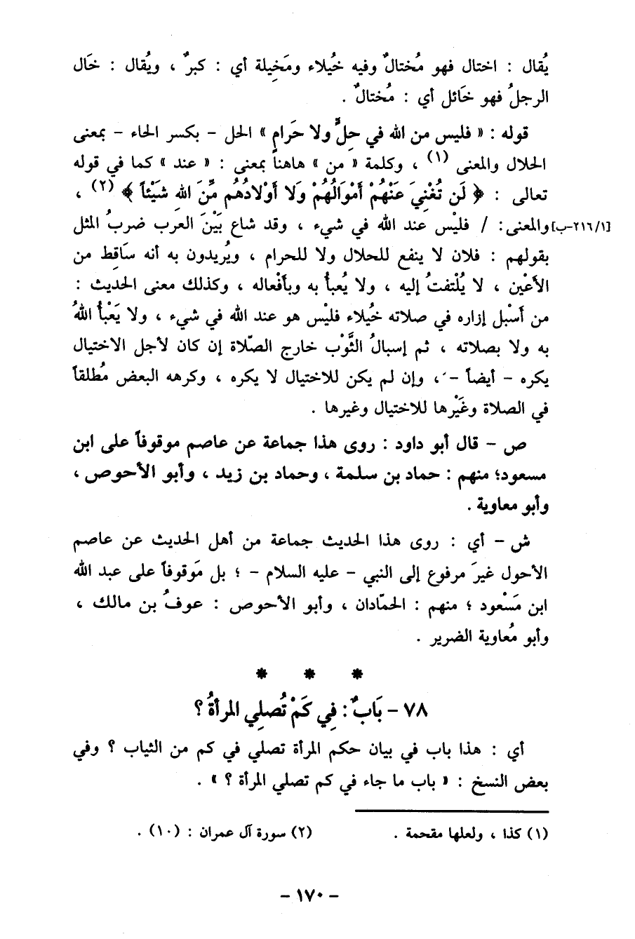 78- بَاب: فِي كم تُصلِي المرأة؟