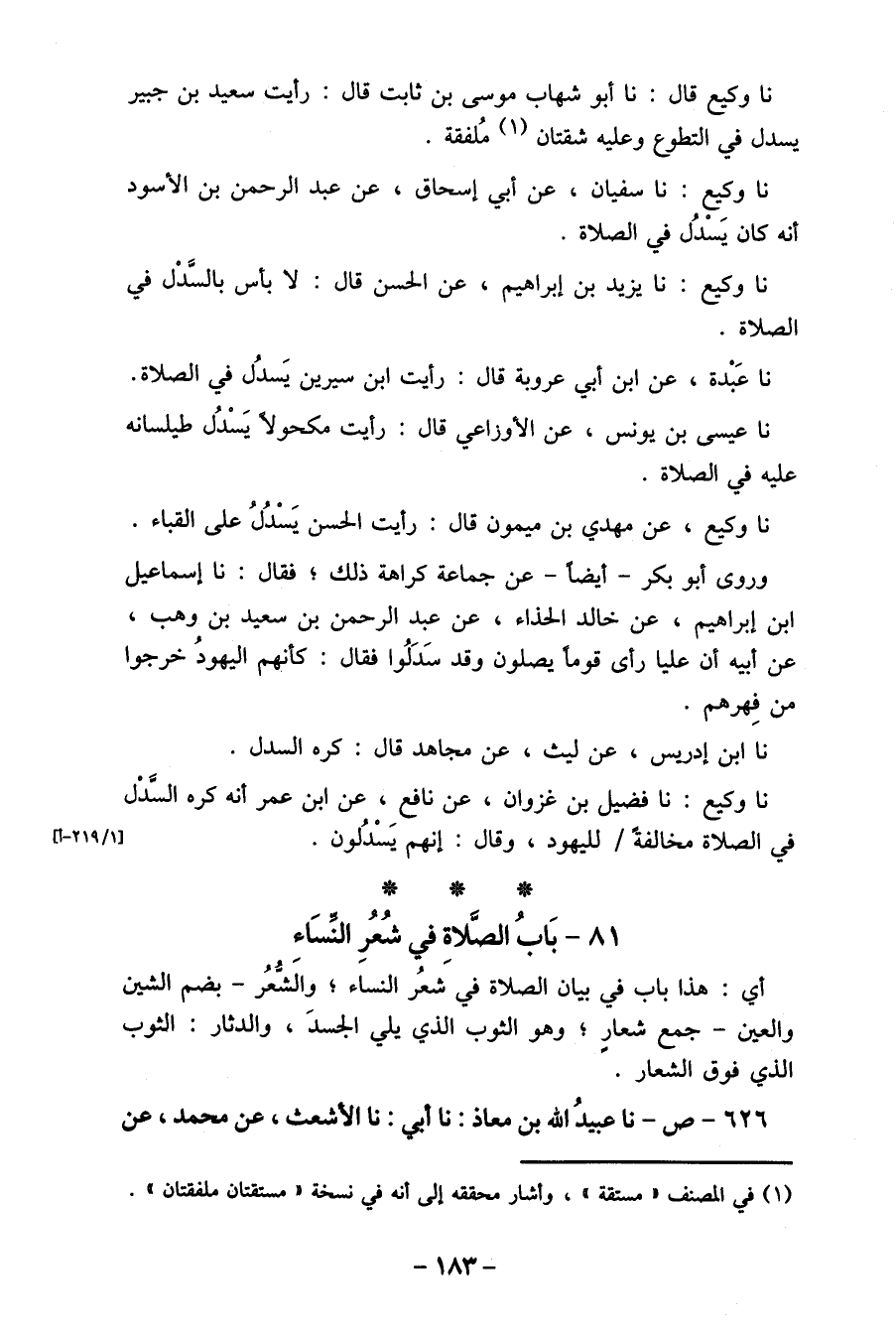 في الصلاة مخالفةً / لليهود، وقال: إنهم يَسْدُلون (1/219-1)