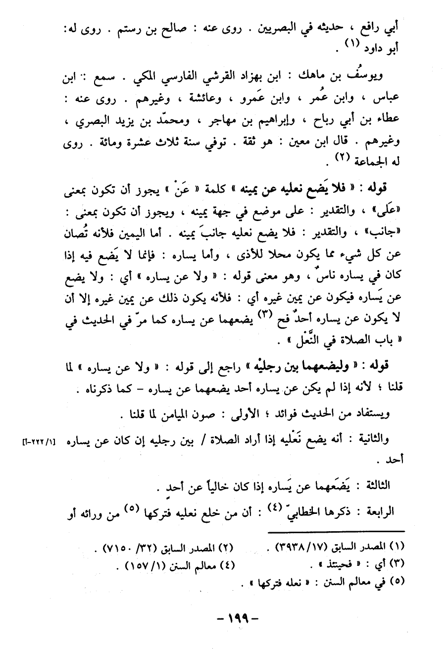الرابعة: ذكرها الخطابية (4) : أن من خلع نعليه فتركها (5) من ورائه أو