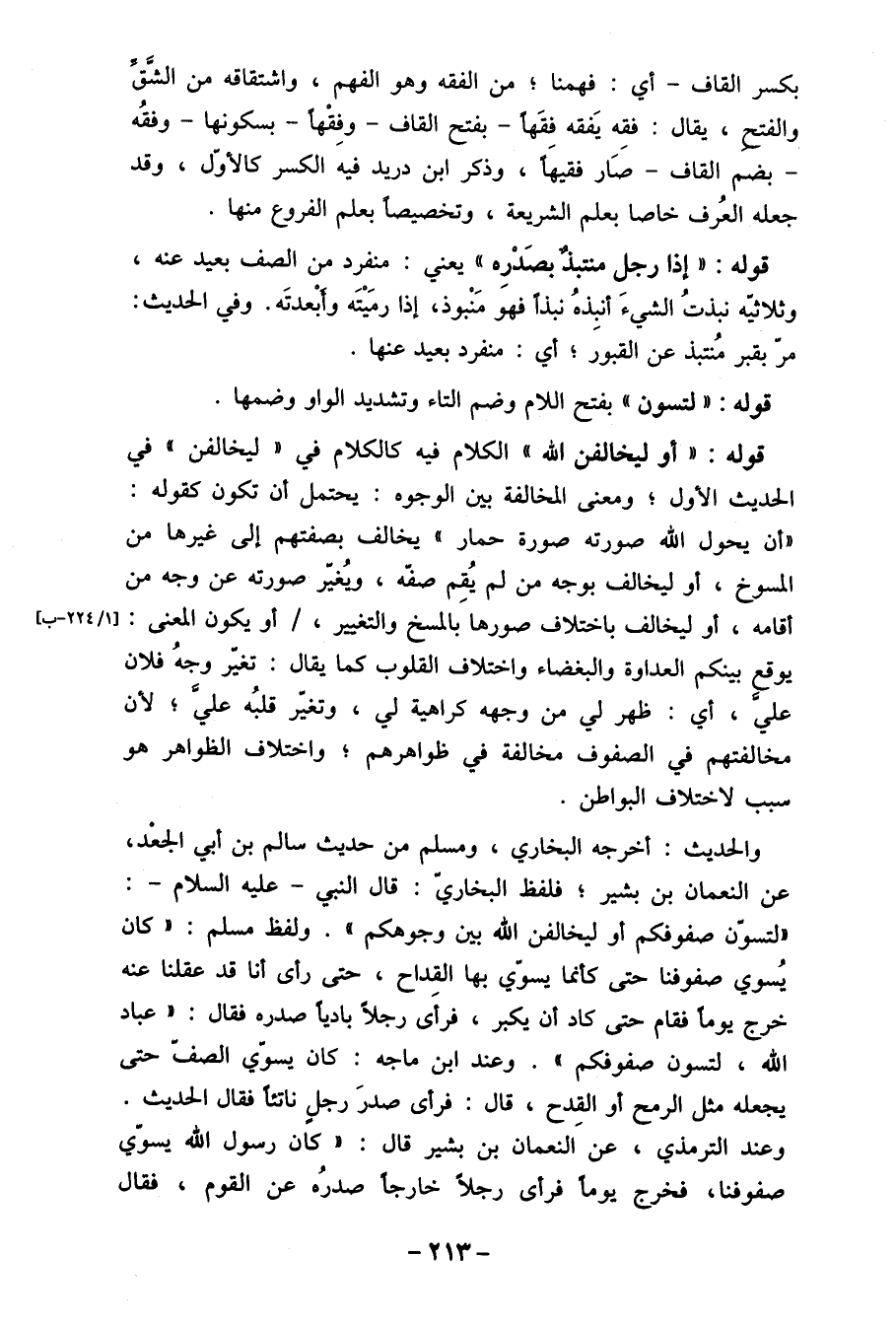 لتسون صفوفكم أو ليخالفن الله بين وجوهكم" ولفظ مسلم: " كان