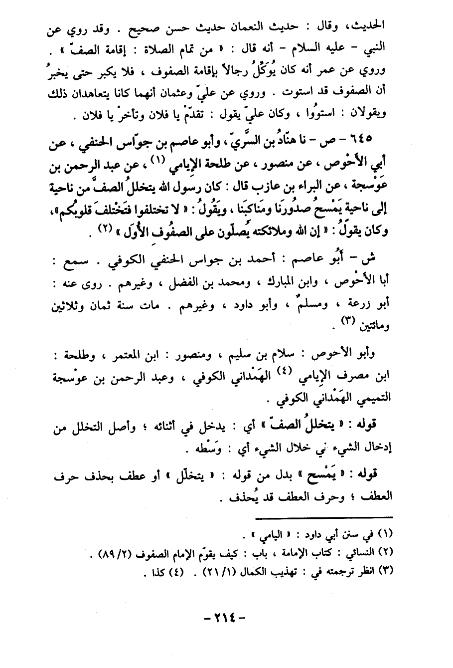 (2) النسائي: كتاب الإمامة، باب: كيف يقوم الإمام الصفوف (2 / 89) .