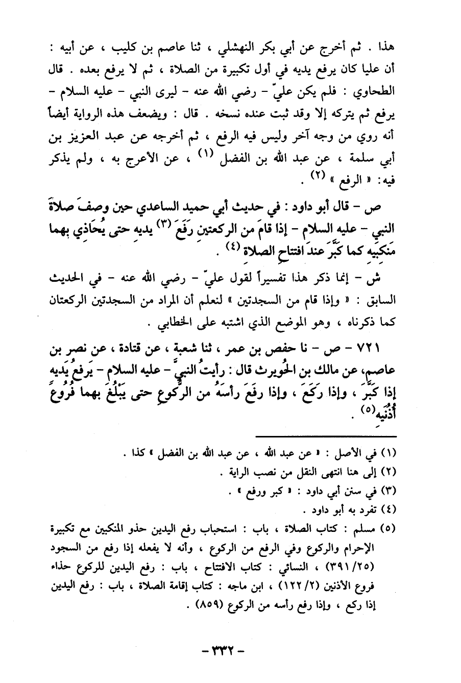 (5) مسلم: كتاب الصلاة، باب: استحباب رفع اليدين حذو المنكبين مع تكبيرة الإحرام والركوع وفي الرفع من الركوع، وأنه لا يفعله إذا رفع من السجود (25 / 391) ، النسائي: كتاب الافتتاح، باب: رفع اليدين للركوع حذاء