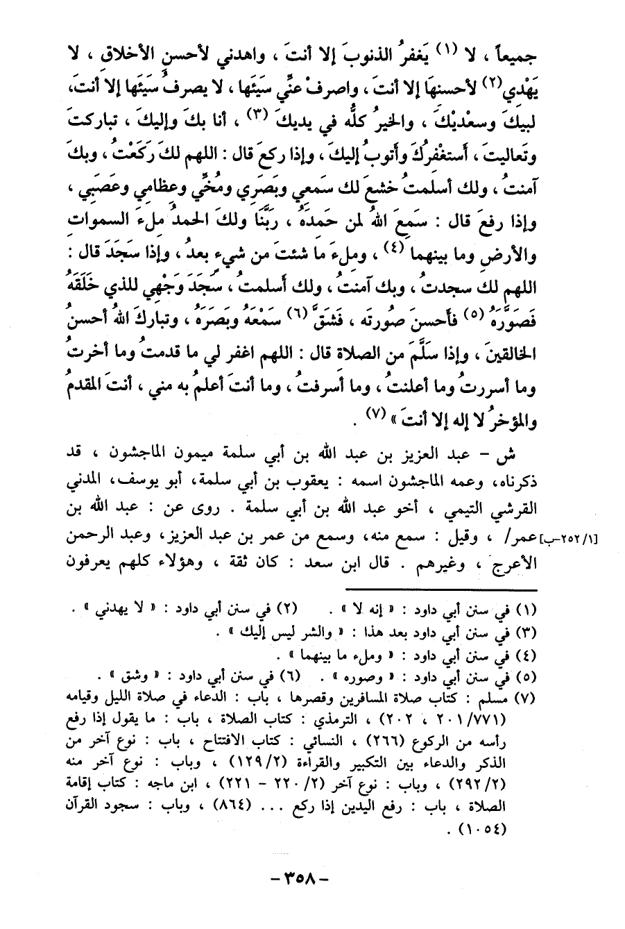 (7) مسلم: كتاب صلاة المسافرين وقصرها، باب: الدعاء في صلاة الليل وقيامه (1 77 / 1 0 2، 2 0 2) ، الترمذي: كتاب الصلاة، باب: ما يقول إذا رفع رأسه من الركوع (266) ، النسائي: كتاب الافتتاح، باب: نوع آخر من الذكر والدعاء بين التكبير والقراءة (2 / 129) ، وباب: نوع آخر منه (2/292) ، وباب: نوع آخر (2 / 0 22- 221) ، ابن ماجه: كتاب إقامة الصلاة، باب: رفع اليدين إذا ركع 00. (864) ، وباب: سجود القرآن (1054) .