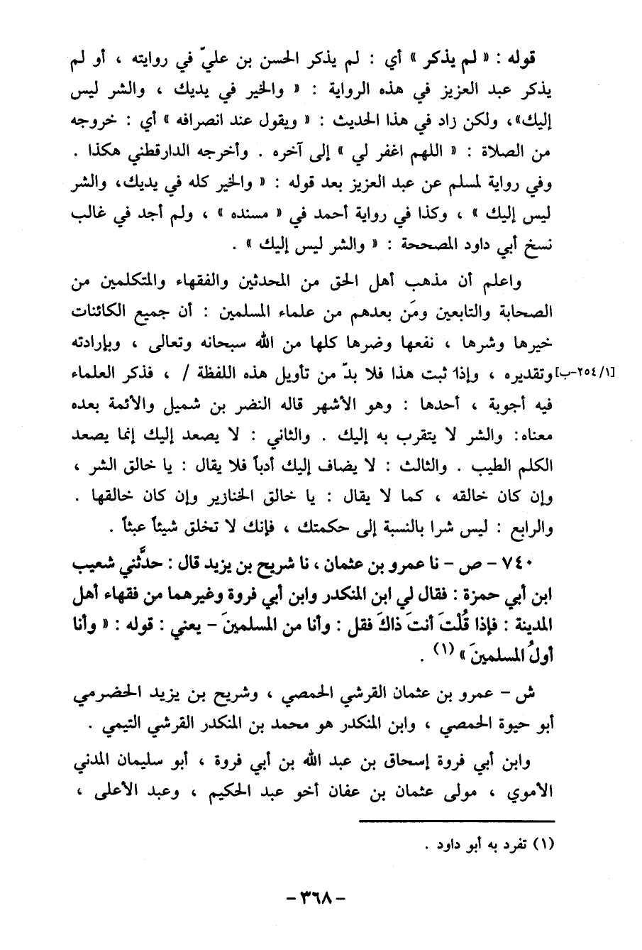نسخ أبي داود المصححة: " والشر ليس إليك ".